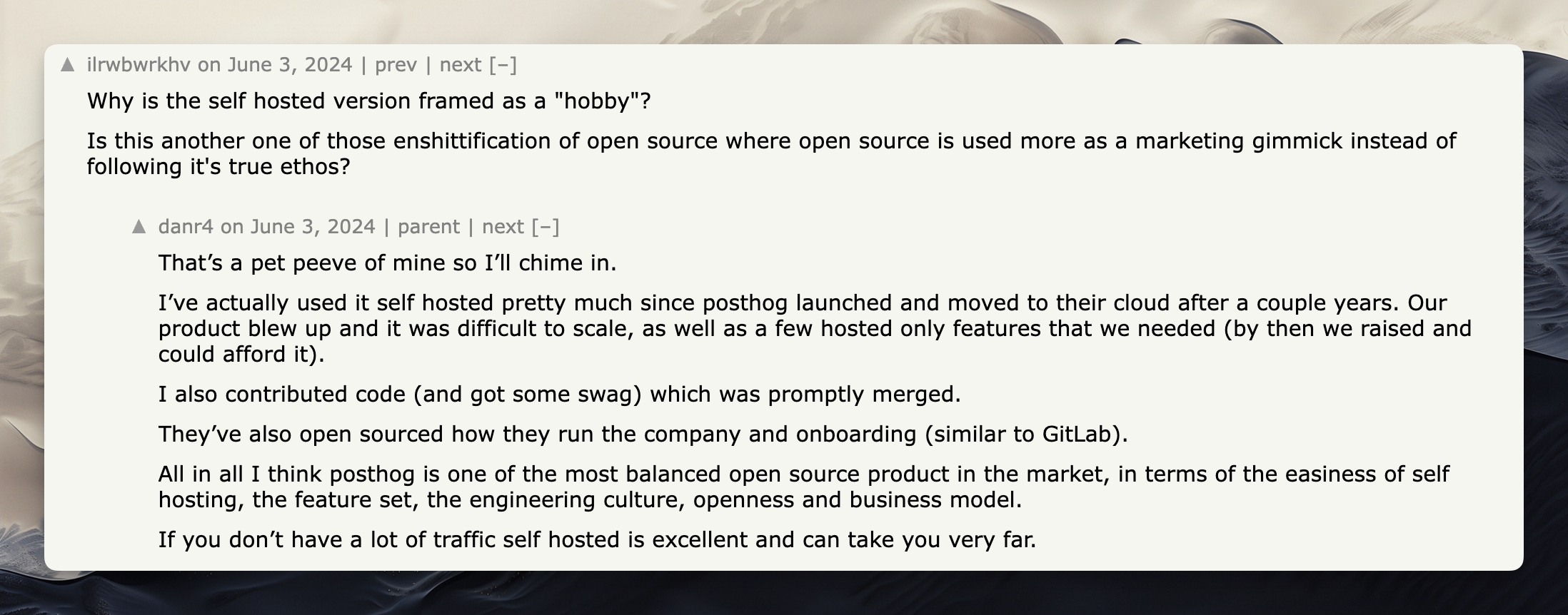 Folks on Hacker News complaining about PostHog’s OSS edition
